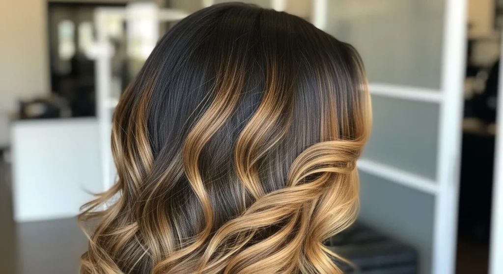 Multi-dimensional caramel honey balayage uses multiple tones to create depth and variation. This technique combines light, medium, and dark shades to produce a layered color effect.
