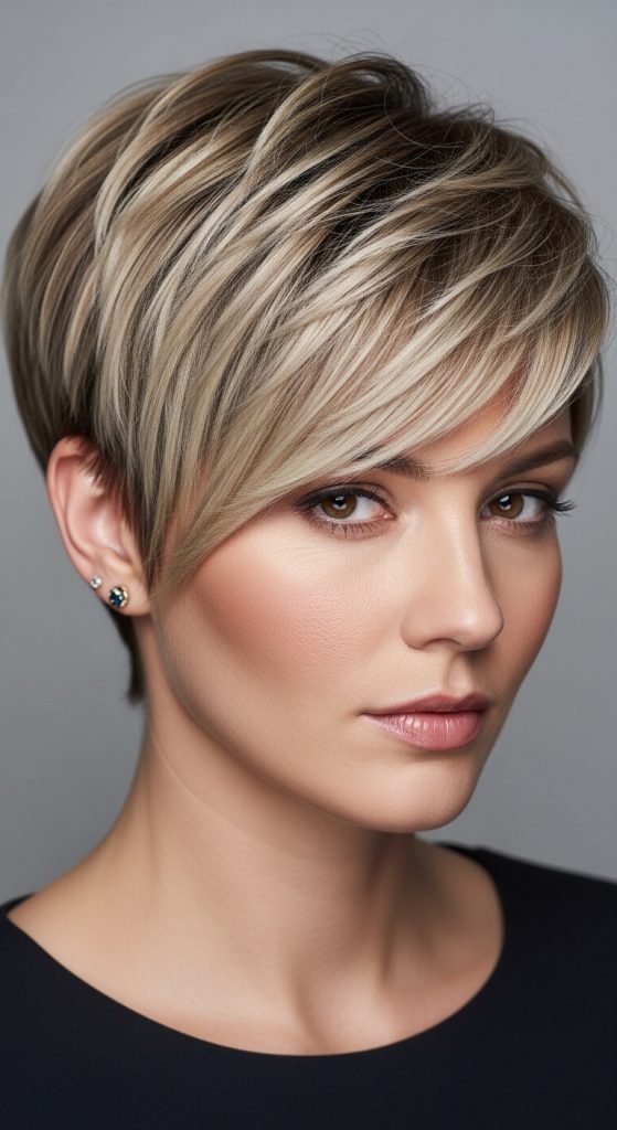 This variation of the pixie cut features very short front sections with longer layers at the back. It creates a bold contrast while maintaining a structured design.