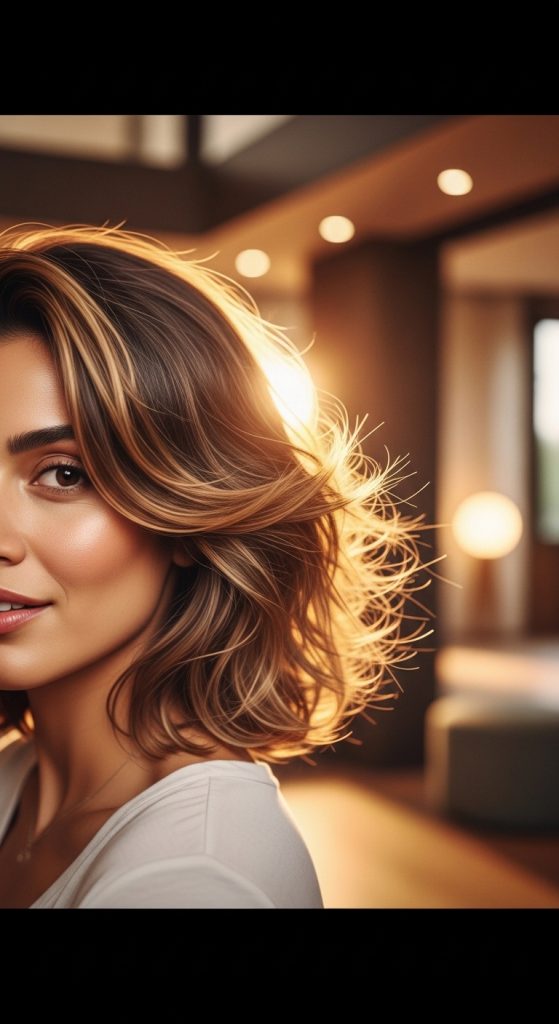 The uneven layers add volume and dimension, especially for medium-length hair. This approach works well for both straight and wavy textures and can be adjusted to create subtle or bold effects.