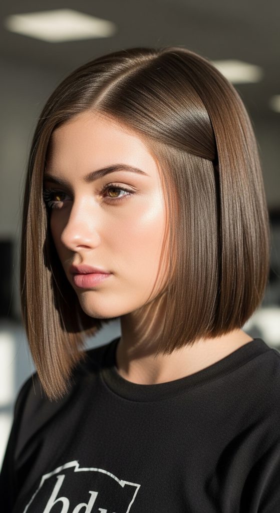 A classic blunt bob is defined by its straight, even cut that creates a clean and structured outline. This design emphasizes precision and symmetry, making it a key example of a sophisticated haircut. The blunt edges provide a sharp finish that enhances the overall appearance, while the length can be adjusted to suit different preferences. This style works well for fine and medium hair types because it creates the illusion of thickness and density. The simplicity of the design aligns with minimalist style principles and modern design trends.